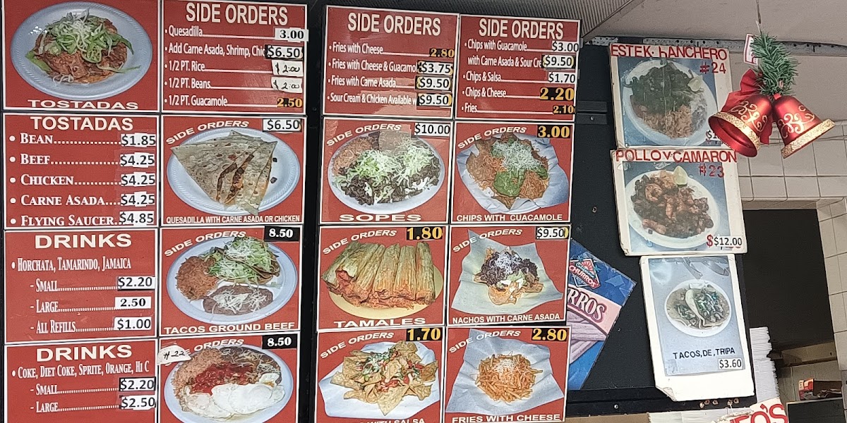 The star of the menu is undoubtedly the tacos, available in beef or chicken at just $2.50 each, perfect for a satisfying snack or a meal. Don't forget to indulge in extras like guacamole and sour cream for a mere dollar. If you crave something crunchier, the tostadas with bean or chicken fillings delightfully satisfy.